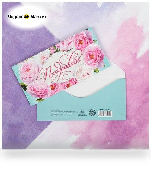 Конверт для денег «Поздравляю», пионы, 16,5 × 8 см продается в интернет-магазине Яндекс Маркет