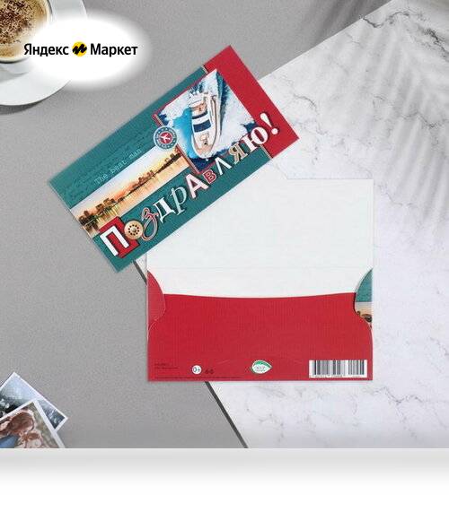 Конверт для денег "Поздравляю!" яхта, вода, зеленый фон, 16.8х8.3 см, 10 шт. продается в интернет-магазине Яндекс Маркет