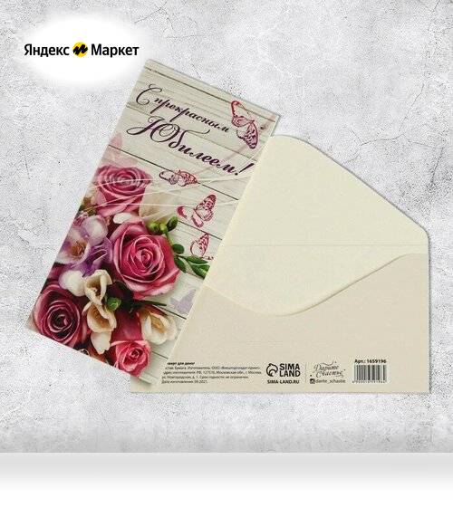 Конверт для денег «С прекрасным Юбилеем», розовый букет, 16,5 × 8 см продается в интернет-магазине Яндекс Маркет