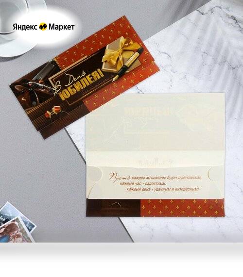 Конверт для денег "В День Юбилея!" ручка, бант, глиттер, 16х8см, 10 штук продается в интернет-магазине Яндекс Маркет