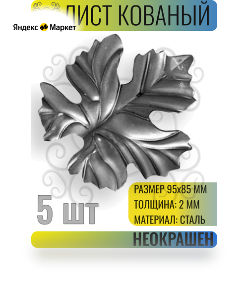 Кованый элемент Лист стальной. Размеры 95х85 мм. Толщина 2 мм - 5 шт продается в интернет-магазине Яндекс Маркет