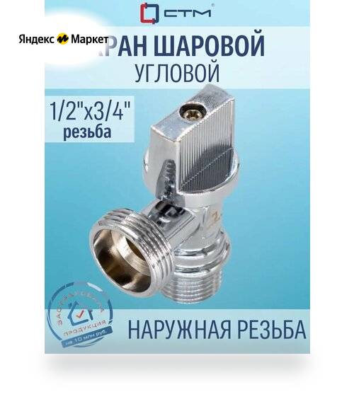 Кран СТМ шаровой для бытовых приборов угловой 1/2"х3/4" штуцер-штуцер с отражателем бабочка хром продается в интернет-магазине Яндекс Маркет