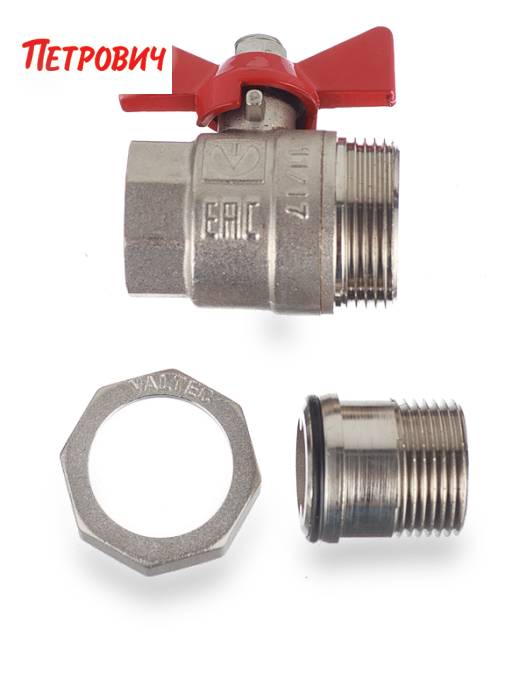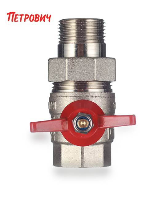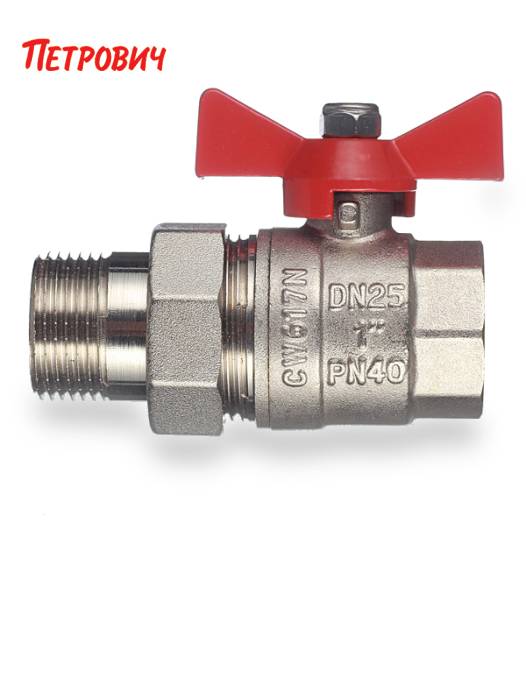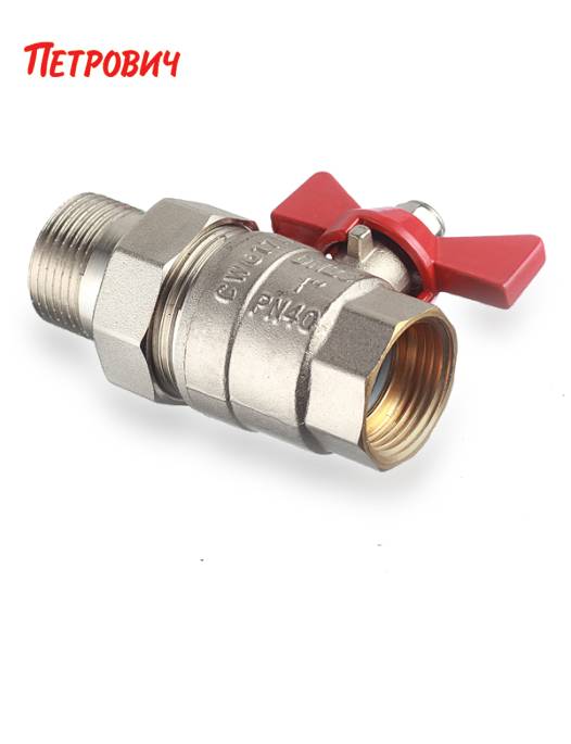 Предназначен для полного открытия или закрытия потока воды. Полнопроходной, ремонтопригодный шаровой кран с увеличенным ресурсом. Наличие сгона позволяет монтировать и демонтировать кран без демонтажа трубопровода. Чаще всего устанавливается перед радиаторами отопления. Состав: корпус - латунь с никелированным покрытием, шар - латунь с хромированным покрытием. Максимальная рабочая температура: + 120 ?С Гарантия: 10 лет. Средний полный срок службы: 30 лет. Расшифровка маркировки: 1" – диаметр условного прохода (16 мм), в/н - резьба присоединений внутренняя/наружная., бабочка – тип ручки. Производитель: Италия/Китай.