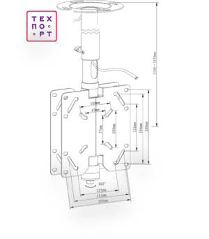 Ean 4607161206003 Стандарт Vesa 100 x 100; 200 x 100; 200 x 200 мм Тип крепления потолочный Тип фиксации телевизора поворотный Диап. регулировки по горизонт +/- 360 ° Расстояние от стены минимальное 1100 мм Расстояние от стены максимальное 1850 мм Стандарт крепления 100 x 100; 200 x 100; 200 x 200 Vesa Материал корпуса металл Максимальная нагрузка 60 кг Цвет черный