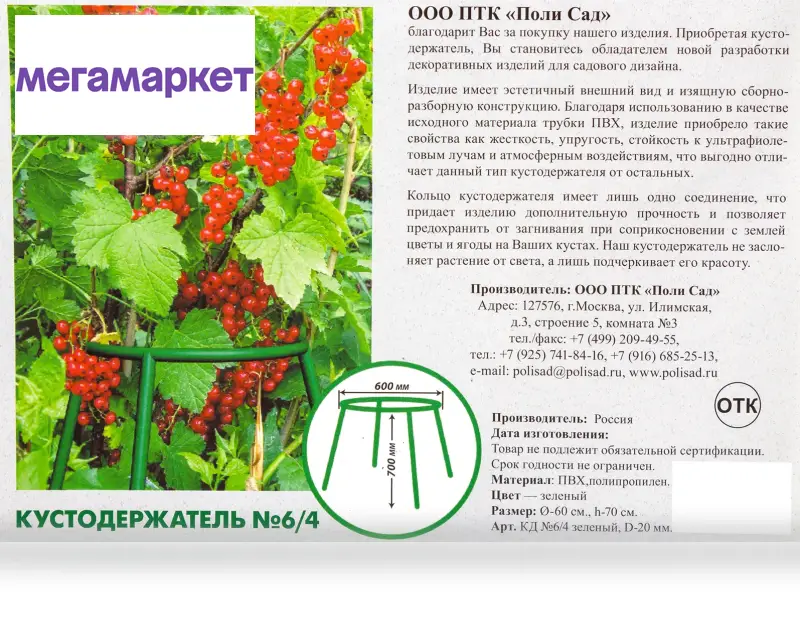 Кустодержатель садовый металлический состоит из полудуг высотой 65 см, диаметром 35 см. - количество в комплекте указано на фото. Подпорка под кусты выполнена из трубы стальной электросварной диаметром 10 мм с пвх-покрытием для избежания коррозии. Опора для садовых растений подходит для кустов смородины, крыжовника, гортензий, роз, пионов, георгинов, других цветов и кустов. Опора для кустов и цветов позволяет формировать растения желаемой формы, делать их аккуратными и компактными. В зависимости от размера куста вы можете использовать несколько подпорок. Поддержка для растений крепко и бережно поддержит ветви плодовых и декоративных растений, заботливо выращиваемых Вами в саду или огороде, не давая им опускаться до земли. Кустодержатель для смородины и крыжовника легко крепится в рыхлый грунт, в плотный грунт не втыкайте, проделывайте ямки в земле колышком. Нас ищут: кустодержатель для смородины, опора для смородины, подпорка для гортензий, кустодержатель для крыжовника, кустодержатель круглый, полудуги, кустодержатель металлический, подпорка для цветов, подпорка под кусты, подпорка для пионов, опора для роз.