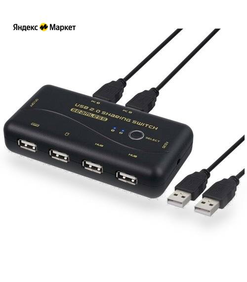 KVM-переключатель GSMIN AN-21 2xUSB (F), 4xUSB (F) (Черный) продается в интернет-магазине Яндекс Маркет