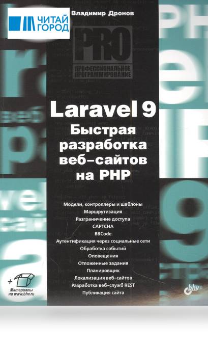 Книга представляет собой полное описание фреймворка Laravel 9 для быстрой разработки сайтов на языке РНР. Дан краткий вводный курс для начинающих, в котором описывается разработка простого учебного сайта — электронной доски объявлений. Описаны базовые инструменты Laravel: миграции, модели, маршруты, контроллеры, шаблоны, средства обработки пользовательского ввода и сохранения выгруженных файлов, валидаторы, шаблоны, пагинаторы и инструменты разграничения доступа. Рассказано о более развитых средствах: внедрении зависимостей, провайдерах, посредниках, событиях и их обработке, отправке электронной почты, оповещениях, очередях и отложенных заданиях, встроенном планировщике, инструментах кеширования, локализации сайтов и расширении возможностей встроенной утилиты artisan. Описаны дополнительные библиотеки для обработки BBCode-тегов и САРТСНА, вывода графических миниатюр, аутентификации через социальные сети. Рассмотрено программирование веб-служб REST, вещание по протоколу WebSocket и публикация сайта.