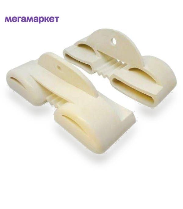 **Латодержатель ЛДП 2.38-3** — универсальный фиксирующий элемент для монтажа ламелей (латофлексов) на металлическом или деревянном каркасе кровати, дивана, раскладушки. Изготовлен из высокоэластичного и прочного полимера — эластопласта. Цвет — белый. В набор входит 2 шт. Размер элементов: ширина — 3,5 см, толщина — 4,5 см, длина — 11 см.
