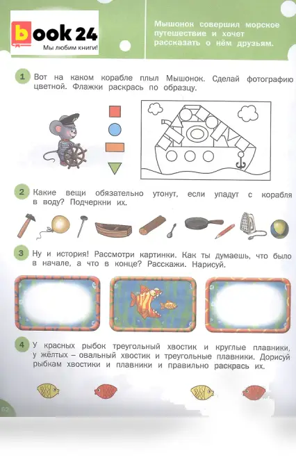 Пособие составлено в соответствии с требованиями ФГОС дошкольного образования. Позволяет развивать у детей логическое мышление, а также сообразительность, внимание, воображение, память, речь. При выполнении заданий "нарисуй", "дорисуй", "раскрась", "обведи", "зачеркни" и "подчеркни" необходимо использовать цветные карандаши.