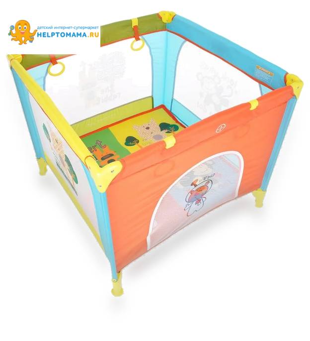 • 2 колеса с фиксаторами делают удобным перемещение манежа-кроватки по дому