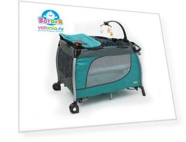• 2 колеса с фиксаторами делают удобным перемещение манежа-кроватки по дому