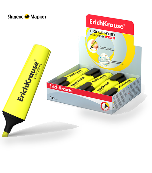 Маркер текстовыделитель ErichKrause V-12, 0.6-5.2 мм, флуоресцентные чернила на водной основе, жёлтый, 10 шт. продается в интернет-магазине Яндекс Маркет