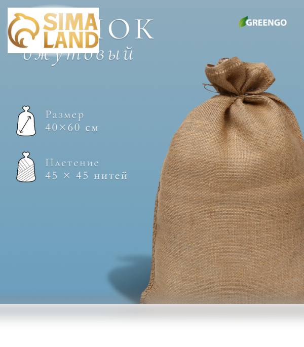 Мешок джутовый, 40 × 60 см, плотность 45 × 45 нитей, без завязок, Greengo продается в интернет-магазине Сима Ленд