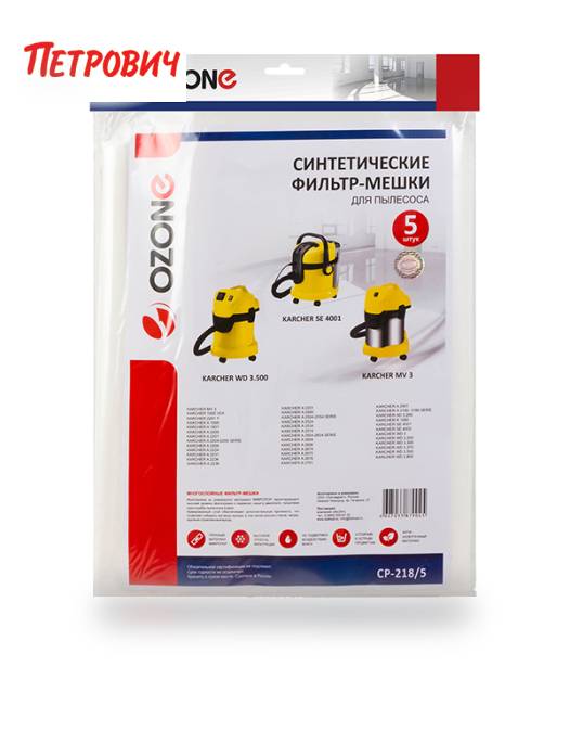 Мешок для пылесоса OZONE (CP-218/5) 36 л синтетическая ткань (5 шт.) продается в интернет-магазине ПетровичЭксперт: Ростислав Т., специалист по потребительским товарамДата рецензии: 18 октября 2025 годаРекомендация к покупке нейтральная