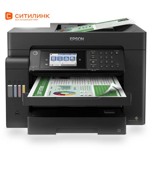 Epson L14150 — это компактное бескартриджное МФУ 4-в-1 (принтер-сканер-копир-факс) с возможностью печати документов А3 формата через задний лоток. Оно специально создано для тех, кому необходимы экономичная печать документов различного формата и широкие функциональные возможности, включая работу по Wi-Fi Direct и Ethernet. В комплект поставки уже входит набор полноразмерных контейнеров с чернилами. Бескартриджная система – большой ресурс печатиБескартриджные устройства Epson используют чернильные контейнеры вместо картриджей. Их объем в 10 раз превышает объем стандартных картриджей, благодаря чему всего с одного комплекта контейнеров можно распечатать до 7500 ч/б и 6000 цветных отпечатков. Инновационная система заправки чернил «Key Lock»Система «Key Lock» не даст перепутать цвета при заправке. Секрет новой системы заправки в уникальной форме носика контейнера, которая совместима только с соответствующим по цвету заправочным отверстием по принципу ключа с замком. Новые контейнеры со встроенным клапаном от проливанияКонтейнеры с чернилами для моделей серии L имеют внутренний клапан, который защищает от случайного проливания при переворачивании контейнера. Клапан открывается только при установке контейнера в отверстие для заправки, после чего чернила начинают поступать внутрь печатающей системы. Как только вы вынимаете контейнер из заправочного отверстия - клапан блокирует подачу чернил, исключая возможность случайного проливания. Четкий текст и графика как на лазерном принтереДля черно-белой печати модель использует пигментные чернила Epson черного цвета, которые обеспечивают: Четкий текст и графику на обычной бумаге; Мгновенное высыхание отпечатков; Стойкость к попаданию влаги и выделению маркером. Сменная емкость для отработанных чернилМФУ Epson L14150 – устройство для бизнеса, рассчитанное на достаточно высокие нагрузки печати. Для того чтобы не возить устройство в сервисный центр при заполнении емкости для отработанных чернил, мы сразу оснастили его сменной емкостью, которую пользователь может с легкостью заменить самостоятельно. Беспроводное подключение по Wi-FiОсновные преимущества беспроводной печати – экономия места на рабочем столе и печать из любой точки дома и офиса. Подключитесь к любому устройству с поддержкой Wi-Fi и используйте максимум возможностей беспроводной работы с принтером – печатайте и сканируйте документы и фотографии удаленно. Подключение по сети EthernetДанное устройство дает возможность сетевого подключения, что делает его идеальным решением для работы с нескольких ПК в условиях офиса. Причём пользователи смогут не только отправлять задания на печать, но и сканировать изображения сразу на свой компьютер, что сэкономит их рабочее время и ускорит рабочий процесс. Печать с мобильных устройствСкачайте и установите одно из бесплатных приложений сервиса Epson Connect и печатайте или сканируйте изображения с ваших мобильных устройств, работающих на базе iOS и Android. Лотки для разных типов бумагEpson L14150 оснащен несколькими лотками для загрузки бумаги: фронтальный предназначен для А4 формата, задний лоток рассчитан на загрузку носителей вплоть до А3 формата, что позволяет одновременно работать с различными форматами и типами бумаг. Если вы печатали документы формата А4, а затем хотите напечатать А3, вам не придется вынимать бу
