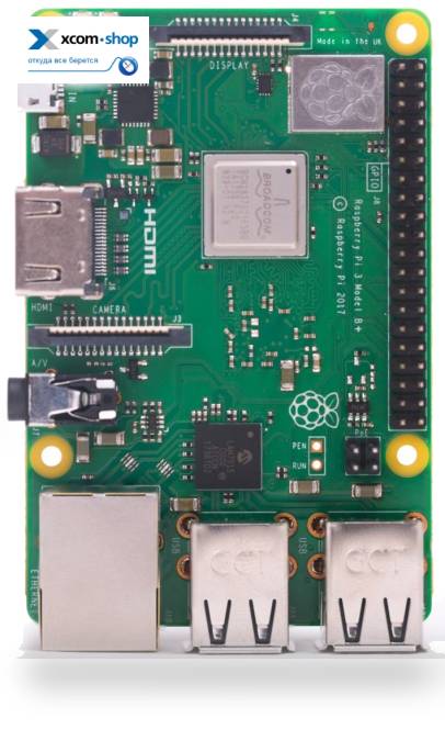 Микрокомпьютер Raspberry Pi 3 Model B+ представляет собой функциональную малогабаритную сборку, оптимальную для построения автоматизированных систем, сверхкомпактных настольных системных блоков и т. д. Изделие представляет собой материнскую плату, оборудованную процессором Broadcom 4x1400 МГц и 1 ГБ оперативной памяти. Микрокомпьютер, снабженный контроллерами Wi-Fi, Bluetooth 4.2 и сетевым адаптером для присоединения Ethernet-кабеля, не получил устройств флеш-памяти и ОС. Приобрести это оборудование и выбрать операционную систему вы сможете самостоятельно. Максимальная скорость сетевого подключения с помощью штатного адаптера - 300 МБит/с. Для взаимодействия с мониторами и другой компьютерной периферией Raspberry Pi 3 Model B+ получил видеовыход HDMI и слот для накопителя microSD, порты для подключения дисплея и камеры (DSI/CSI). На плате размещены и четыре интерфейса USB 2.0.