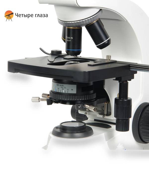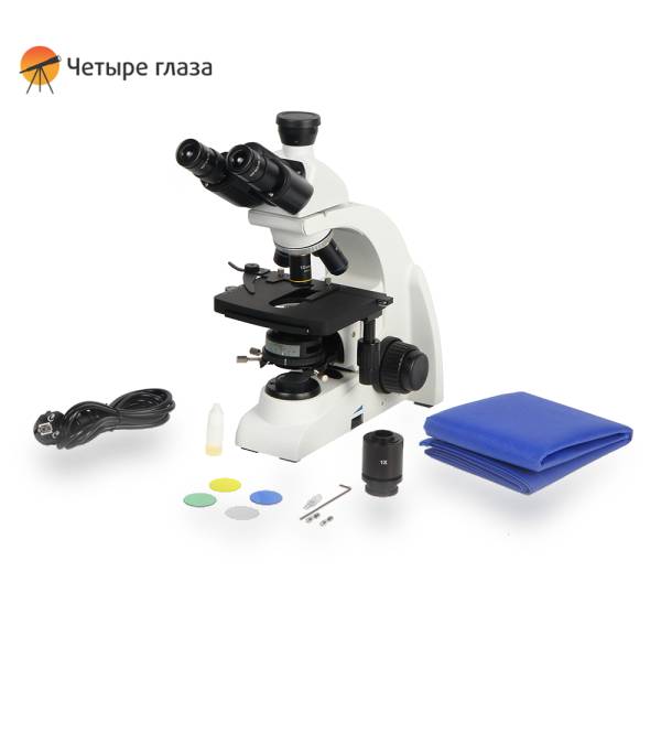 Микроскоп Микромед-1, вар. 3-20 inf. – это микроскоп для научной лабораторной деятельности и обучения студентов. Общее увеличение прибора составляет от 40 до 1000 крат, он предназначен для исследований в светлом поле «сухим» и иммерсионным способами. Микроскоп оснащен тринокулярной насадкой с наклонным бинокулярным узлом, удобным для долгих наблюдений, и вертикальной оптической трубкой для установки камеры (не входит в комплект). Прибор поддерживает грубую и точную фокусировку, его ахроматическая оптика эффективно убирает искажения, есть диоптрийная коррекция. В регулируемой подсветке микроскопа используется галогенная лампа, свет которой комфортен для глаз. Для коррекции светового пучка прибор оснащен конденсором Аббе. В комплектацию включены 4 светофильтра.