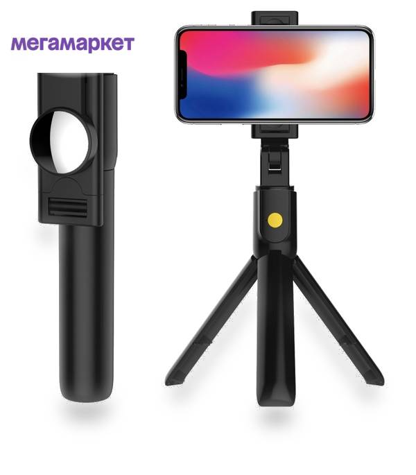 Основные преимущества этого монопода - регулируемая телескопическая ручка и поворот держателя смартфона на 360 градусов. Благодаря этому вы можете делать фотографии с разных ракурсов, а также легко изменять высоту монопода.