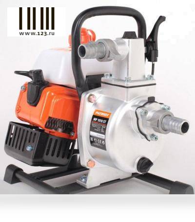 Мотопомпа PATRIOT MP 1010 ST [335101510] {Двиг. 2-т, АИ-92+масло, 40.6сс, 2.0 л.с., самовсас., макс.производит.10 м?/ч (166 л/м), макс.глуб.всас.8 м., макс.нап.30м, диам.патруб. 1", бак 0,9 л, вес 10} продается в интернет-магазине 123 Ru