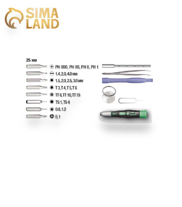 Philips – 1.0 (2 шт.); 1.5 (2 шт.); 2.0 (2 шт.); 2.5 (2 шт.); 3.0 (3 шт.); 3.5*(2 шт.); JIS000; JIS00; JIS0; JIS1