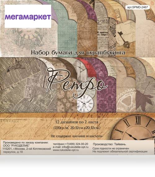 Набор бумаги для скрапбукинга "Ретро", 24 листов, арт. SPMD-2467 продается в интернет-магазине МегаМаркет