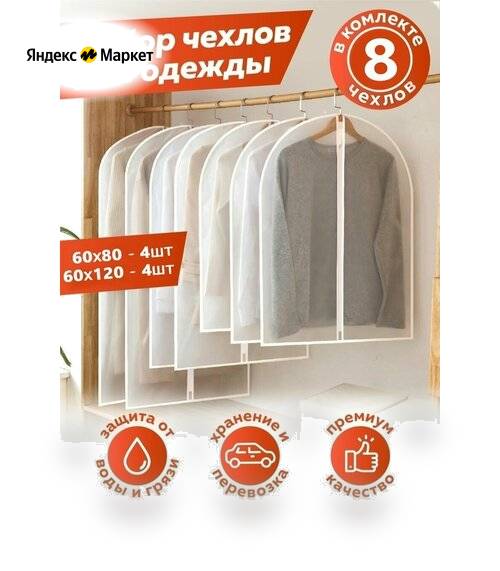 Набор чехлов для одежды HARVEX 8 шт (4 шт-60х80, 4 шт-60х120 см) белый продается в интернет-магазине Яндекс МаркетЭксперт: Евгений Р., шопинг-консультантДата рецензии: 12 ноября 2025 годаРекомендация к покупке нейтральная