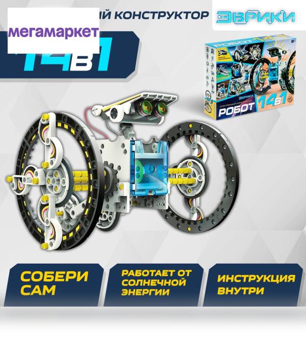 Малыш любит играть, но не любит учиться? С набором для опытов «Робот 14 в 1» ребёнок сам сможет сделать необычного многофункционального робота и при этом изучить основы физики.