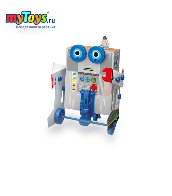 Характеристики: • в комплекте: батарейный отсек с моторчиком оси, соединения, колёса, прочие аксессуары, винты, раскрашенный корпус, набор цветных наклеек для украшения, подробная инструкция • высота в собранном виде: приблизительно 30 см • тип батареек: 1хААА • наличие батареек: не входит в комплект • упаковка: картонная коробка • страна бренда: США Квадробот собирается из самой коробки в целях заботы об окружающей среде. Робот умеет ходить вперёд и махать руками вверх и вниз. Для сборки дополнительно потребуется крестовая отвёртка.