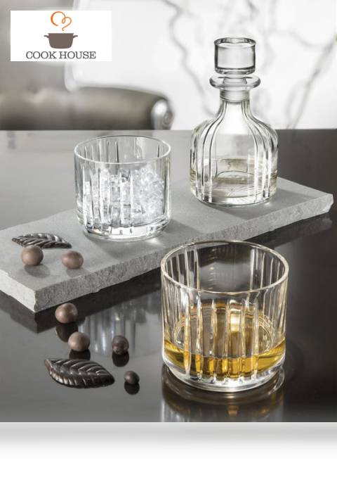 Посуда входит в коллекцию "Опера", состоящую из бокалов, тумблеров и наборов для подачи напитков. Она выдержана в современном стиле и привлекает внимание изысканным геометрическим декором.