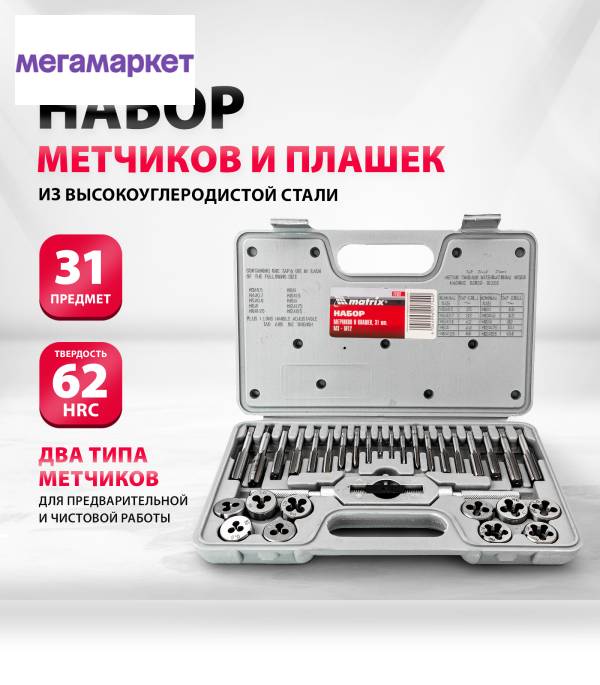 Набор метчиков и плашек MATRIX М3-М12 31 предмет 77337 продается в интернет-магазине МегаМаркет