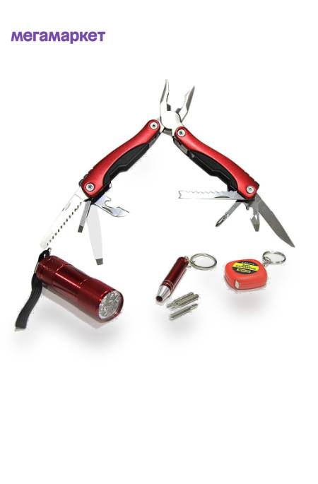 Набор мультитулов 4 в 1 Sakata 4 PС Multi-Function Tool Set - идеальный инструмент для хозяйственных мужчин, которые ценят универсальность и любят быть готовыми ко всему. Отправляетесь на пикник, рыбалку или в поход? Прихватите с собой набор инструментов, который выручит в самых разнообразных ситуациях – от нарезки хлеба и открывания консервов до мелкого ремонта велосипеда или автомобиля. В набор Sakata 4 PС Multi-Function Tool Set входят: Универсальные плоскогубцы 11 в 1. Отвертка со сменными насадками 3 в 1. Удобная и компактная рулетка-брелок 1 м. Фонарик с тремя светодиодами. Характеристики: Цвет: красный. Материал: металл. Размер набора: 13х8х4 см. Размеры плоскогубцев: длина рукояти: 6,5 см., лезвия: 2,5 см. Размеры плоскогубцев в сложенном виде: 6,5х3 см. Упаковка: жестяная коробка. Размеры упаковки: 13х7х4 см. Вес в упаковке: 225 гр. Страна производитель: Китай.