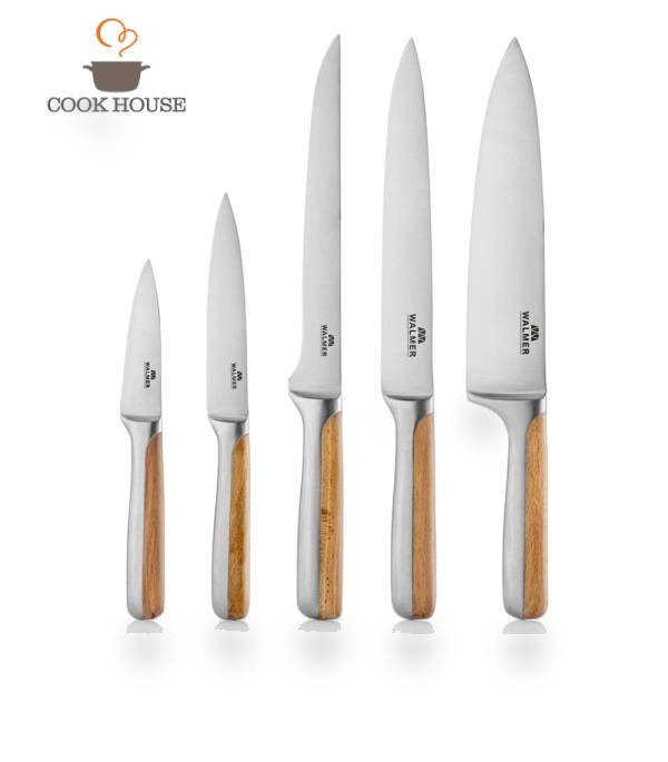 Данный набор ножей является элементом, который сделает вашу кухню богаче и красивее, вписавшись в любой дизайн. Это редкий набор, увидев который ваши гости будут завидовать. Набор состоит из: Овощной нож 7,6 см, универсальный нож 12,7 см, разделочный нож 15 см, нож сантоку 17,7 см, нож для хлеба 19 см, нож шеф-повара 19 см и блок ножей из дерева акации с 6 гнездами Забудьте о вечной заточки ножей, ведь на наших ножах используется японская алмазная заточка, которая позволяет оставаться им острыми долгое время. Этот высококачественный набор ножей имеет элегантный дизайн и обязательно произведет впечатление. Все ножи сделаны из высококачественной нержавеющей стали, что позволит прослужить им долго: лезвие изготовлено из немецкой нержавеющей стали премиум-класса, а ручка из полированной нержавеющей стали достаточно прочна для повседневных задач по нарезке, измельчению и резке. Благодаря антибактериальной обработке металла на нём не только не может образоваться коррозия, но и не заводится вредная для здоровья микрофлора, а также не скапливаются бактерии. Лезвия ножей острые, не требуют заточки