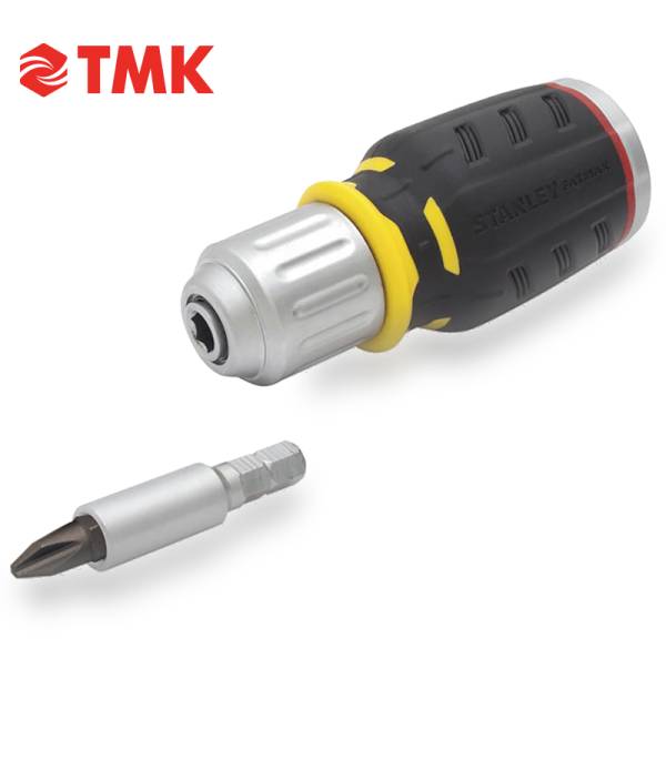 Рукоятка отвертки выполнена из металла и имеет рифление, что обеспечивает надежный хват и предотвращает скольжение инструмента из рук.