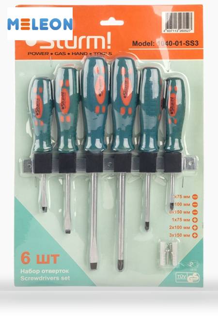 В комплект входит 6 диэлектрических отверток SL3x75, SL5x100, SL6x150, PH0x75, PH1x100, PH2x150; 1 тестер напряжения