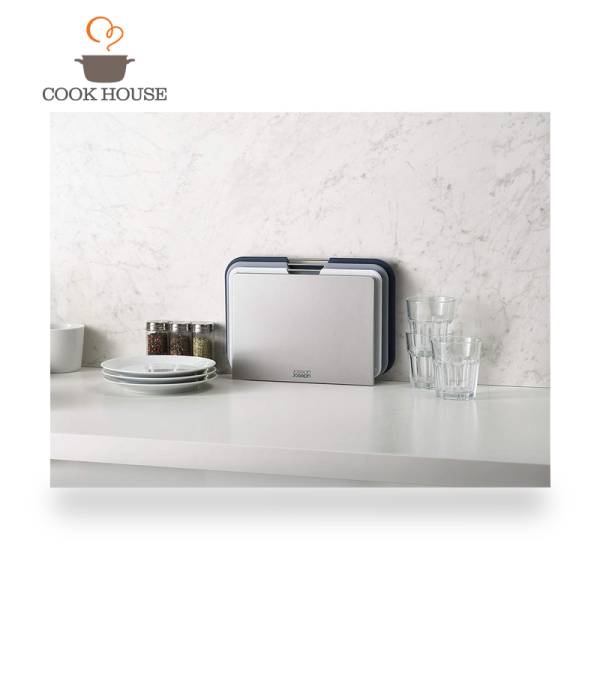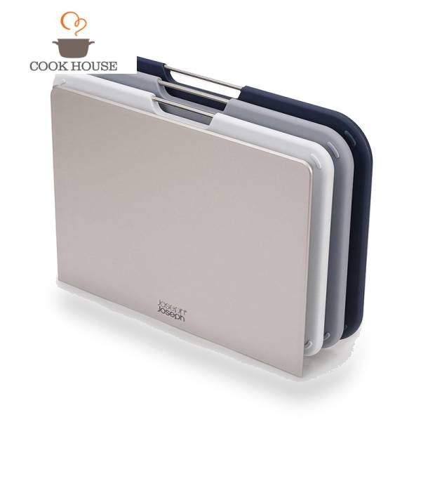 Набор разделочных досок под полкой, JOSEPH JOSEPH 60199Разделочные доски - предмет первой необходимости на кухне, но для тех, кто предпочитает не загромождать рабочую поверхность, Folio Slim предлагает новый способ их хранения. Этот инновационный набор, включающий три разделочные доски с цветовой кодировкой и удобными ножами, оснащен изящным футляром для хранения, который - подождите - крепится к полке для экономии места, позволяя хранить разделочные доски вне рабочей поверхности и в пределах досягаемости.-Уникальный дизайн позволяет использовать неиспользуемое пространство под полкой- В комплект входят три двусторонние доски с удобными для ножей текстурированными режущими поверхностями и нескользящими ножками- Многоуровневая конструкция и перекладины из нержавеющей стали на досках для удобства выбора- Легко устанавливается (винты входят в комплект)- Подходит для кухонных гарнитуров размером W33 см (13") x D24 см (9,5"). Размер доски: 20 x 30 см (7⅞ x 11⅞ дюймов)Уход и использование:- Доски - можно мыть в посудомоечной машине.- Корпус - протирать влажной тканью.- Внимание: Несоблюдение инструкций по установке может привести к повреждению полки шкафа.- Не используйте абразивные ткани или сильные химические чистящие средства.- Поверхность досок, удобная для ножей, предназначена для того, чтобы слегка маркировать их в процессе использованияРазмеры: H7,3 x W31,5 x D22,8 см (H2¾ x W12½ x D9 дюймов) Показать полностью Код продавца0105EBE027520301465881AB2AFA99631696Комплектацияразделочная доска x3