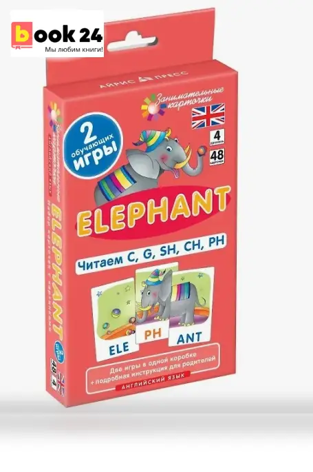 Наглядное пособие. Elephant. Читаем C, G, SH, CH, PH. Английский язык, Level 4.Набор карточек с картинками продается в интернет-магазине Book24