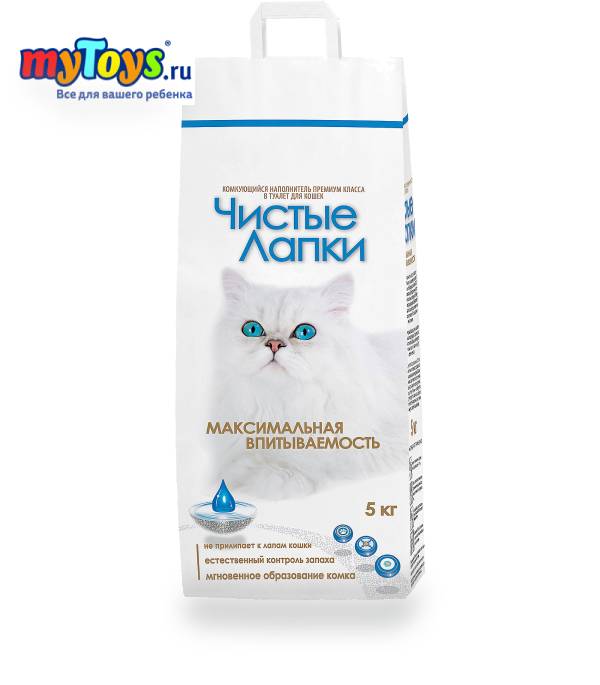 Наполнитель для кошачьих туалетов Чистые Лапки комкующийся, 5 кг продается в интернет-магазине myToys