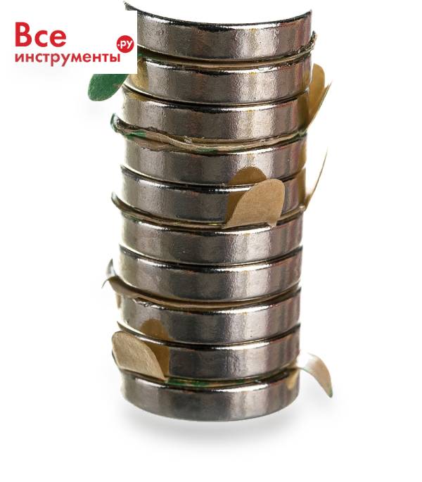 Неодимовый магнит - диск 10х2мм с клеевым слоем, 10шт Forceberg 9-1212217-010