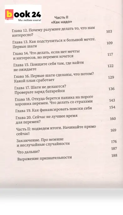 Вдохновляющая книга о том, как решиться на перемены, как набраться смелости, сменить нелюбимую работу, перестать откладывать свою жизнь на потом. Мотивирует и дает план, помогающий решить проблему "хочу, но не знаю, с чего начать".