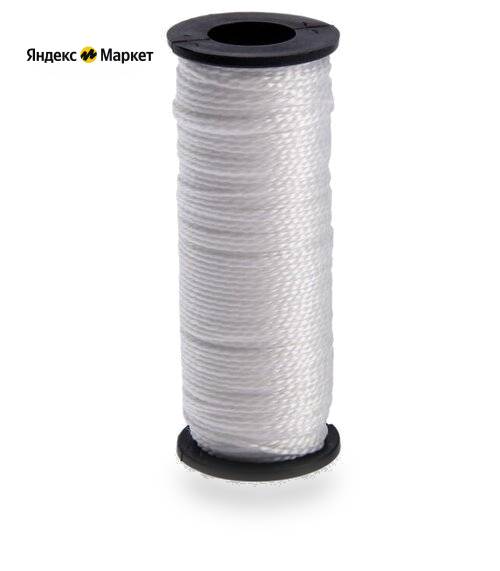 Нить кручёная 2-х прядная ПП, d=1,3 мм, 50 м, цвет белый продается в интернет-магазине Яндекс Маркет
