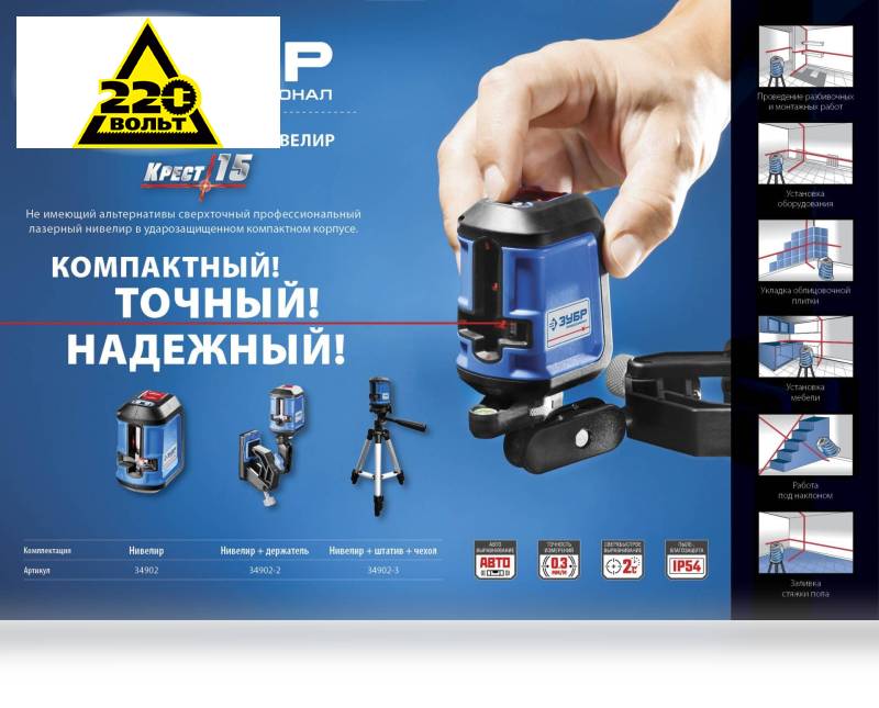 Нивелир лазерный ЗУБР КРЕСТ-15 34902-3_z01 продается в интернет-магазине 220 Вольт