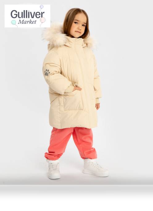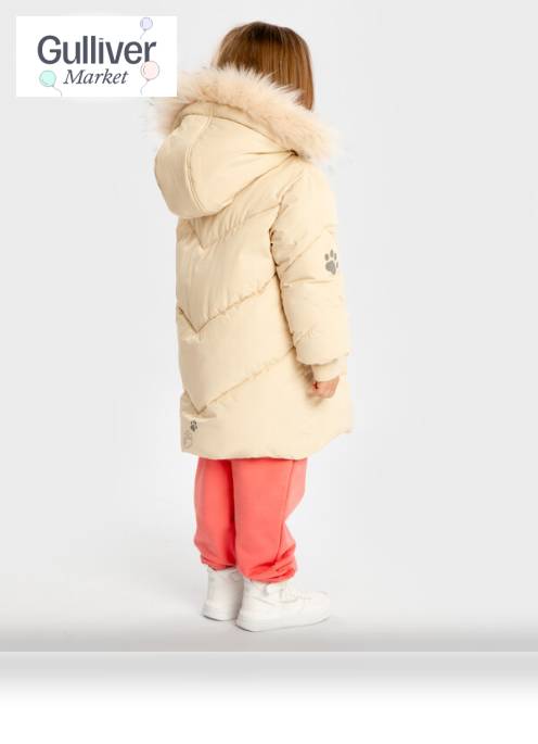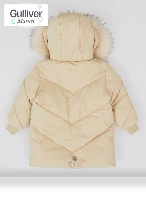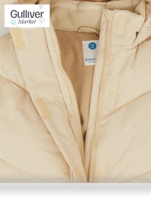 Пальто зимнее водоотталкивающее с капюшоном и накладными карманами бежевое для девочки Button Blue (110) продается в интернет-магазине Гулливер Маркет
