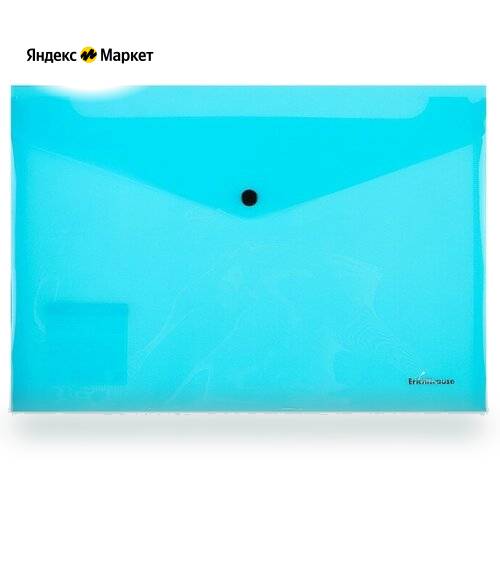Папка-конверт на кнопке А4, 180 мкм, ErichKrause Vivid, глянцевая, полупрозрачная, бирюзовая продается в интернет-магазине Яндекс Маркет