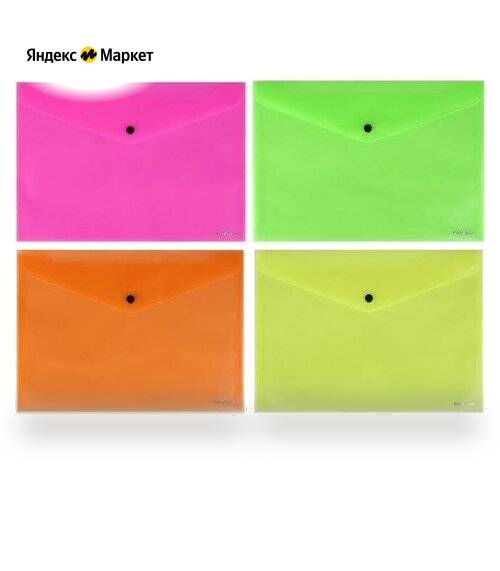 Папка-конверт на кнопке А4, ErichKrause Fizzy Neon, вместимость 100 листов, полупрозрачная, 140 мкм, микс продается в интернет-магазине Яндекс Маркет