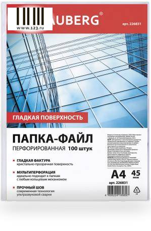 Перфорированные файлы STAFF - это надежные и практичные папки-файлы, которые помогут сохранить все ваши документы в порядке. Они защищают бумажные носители от повреждений и влаги, сохраняя их в идеальном состоянии. Папки-файлы STAFF имеют универсальную перфорацию и фактуру "апельсиновой корки", что обеспечивает прочность и прозрачность. Толщина пленки составляет 25 микрон, что позволяет хранить до 20 листов в одной папке-файле, что является оптимальным количеством для большинства пользователей. В комплекте поставляется 100 штук бесцветных перфорированных папок-файлов STAFF формата А4.
