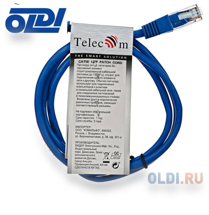 Патчкорд литой "Telecom" UTP кат.5е 1,0м синий продается в интернет-магазине Олди