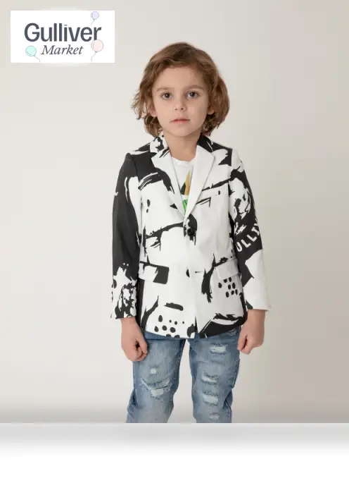 • Модель: Пиджак черно-белый с принтом Gulliver (110)