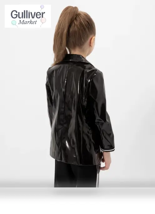 Пиджак из лаковой эко кожи с асимметричным принтом черный Gulliver (122) продается в интернет-магазине Гулливер Маркет