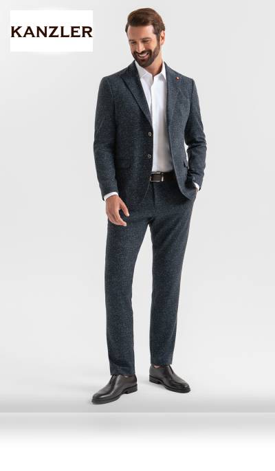 Пиджак KANZLER из смесового хлопкового трикотажа — модель для создания образов в стиле casual и smart casual. Переплетение темно-серых волокон с белыми нитями придает модели фактурность и шарм, а мягкие линии — расслабленность и неформальность. Крой slim fit с узкими заостренными лацканами подчеркивает достоинства мужской фигуры. Облегченная конструкция не предусматривает подкладки, поэтому все швы с внутренней стороны обрамлены коричневой тесьмой. Врезные карманы прикрыты клапанами. Воздухопроницаемый гипоаллергенный хлопок в составе ткани поддерживает оптимальную температуру. Прочные синтетические волокна (полиэстер и эластан) укрепляют материал и берегут его форму.