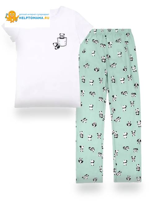 Пижама Bossa Nova "Симпл-димпл" для девочки: футболка и брюки, мятно-белая продается в интернет-магазине ХелпТуМама
